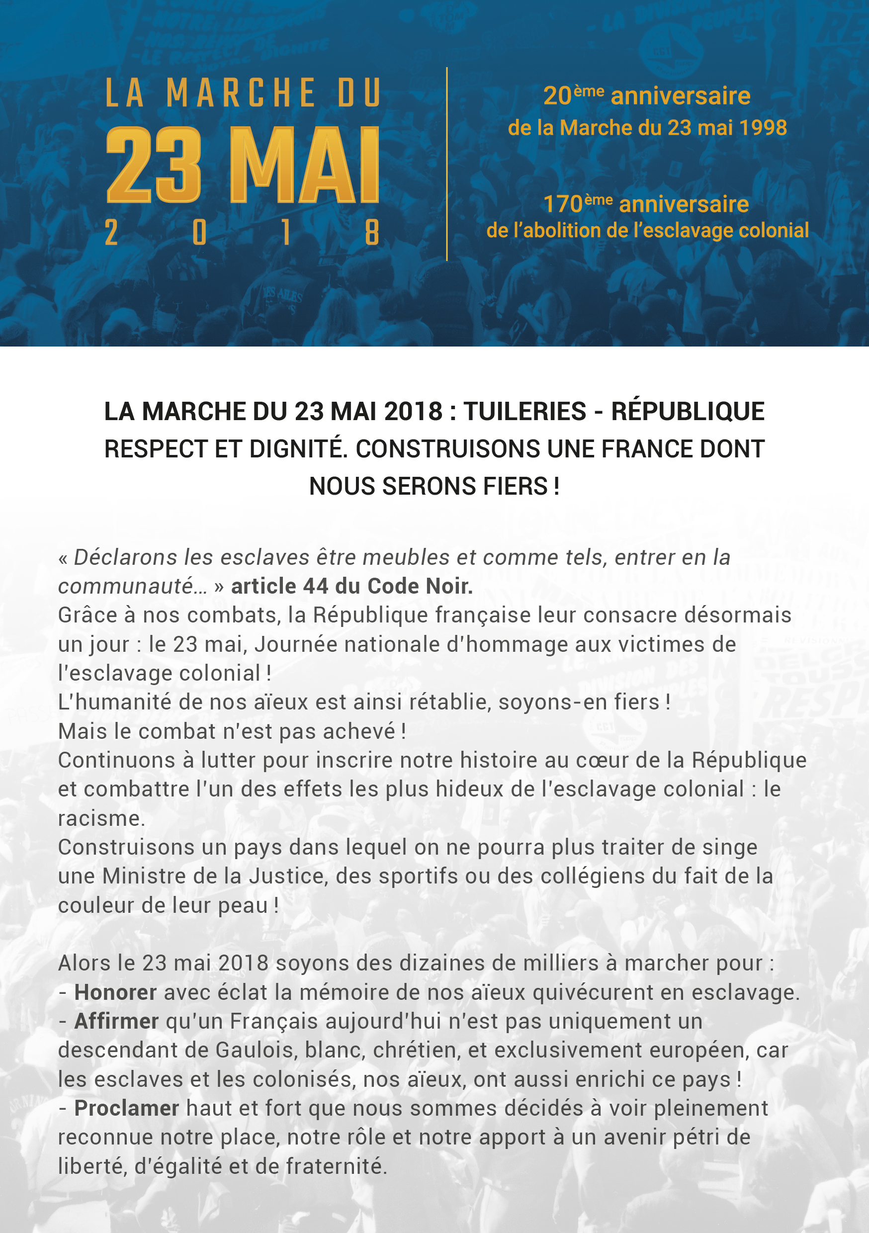 INFORMATION: LA MARCHE DU 23 MAI 2018 14h Tuileries – République